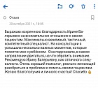 Хочу выразить благодарность Ирине Валерьевне,очень помогла моей дочери! Моя дочь (17 лет) всегда ждала консультаций с ней. 21.10.21, Наталья
