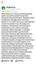Большая благодарность Наталье Олеговне за проделанную работу! Придя первый раз к психологу с кучей разнообразных сложностей, удалось их решить за достаточно короткое время. Очень приятно и комфортно работать с таким опытным и понимающим специалистом, и я вижу большой прогресс в себе и изменения в жизни. В дальнейшем, при возникновении психологических сложностей буду обращаться еще! Спасибо ♡ 13.04.24 Юлия
